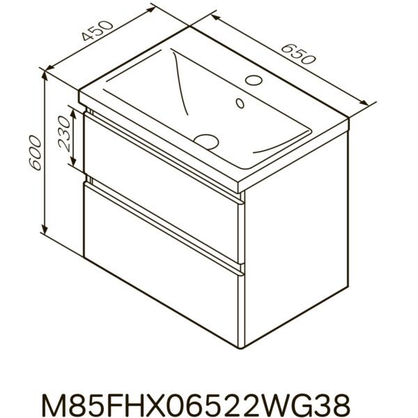 Код товара: 154775Тумба с раковиной, подвесная, 65 см, 2 ящика M85-FHX0652-WC0652WG38 AM.PM X-Joy