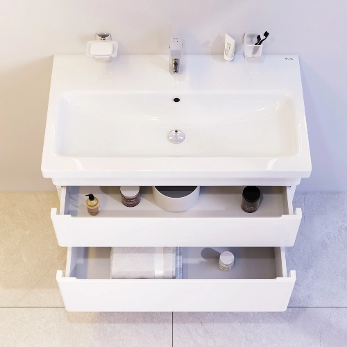 Новинка мебели для ванной Hit предлагает стильный и современный дизайн. Белые глянцевые фасады покрыты экологически чистыми и долговечными полиакриловыми эмалями, которые наносятся по специальной технологии в 7 слоев. Это обеспечивает насыщенный цвет и долговечность в течение всего срока службы (от 10 лет). Ящики оснащены направляющими скрытого монтажа с системой мягкого закрывания soft close, что обеспечивает их мягкое открытие и закрытие.