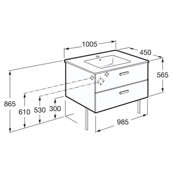 • тумба (1000х450х565 мм) с двумя шухлядами