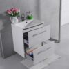 Комплект Санторини 60, шкафчик с умывальником торговой марки Fancy Marble. Размер шкафчика 595х456х707 мм. Данная модель шкафчика под умывальник является нашим стандартным изделием и выпускается в двух цветах, белом и цвете венге. Шкафчик комплектуется умывальником из литого камня, модель умывальника Amelia 600х460 мм.