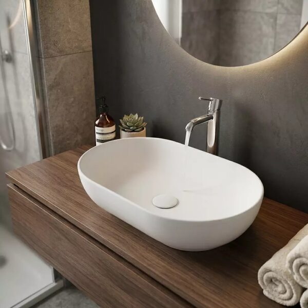 Накладная раковина RAK Ceramics Feeling 55 см — это стильное решение для современной ванной комнаты. Элегантная овальная форма и матовая поверхность придают изделию утончённый внешний вид, а установка на столешницу делает интерьер более лёгким и современным. Раковина сочетает практичность, долговечность и эстетичность.