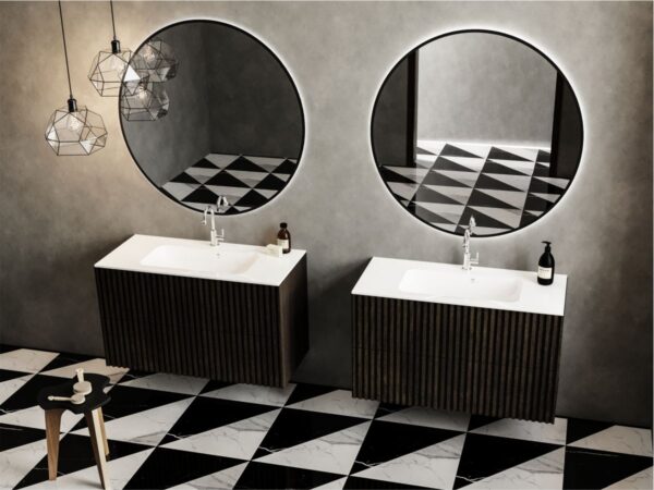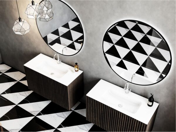 Для получения индивидуального дизайна сантехники, вы можете выбрать любой оттенок из палитры RAL, который наносится на внешнюю поверхность продукции. Умывальник DELLA 1000 из литого мрамора также может иметь цветной глянцевый финиш.