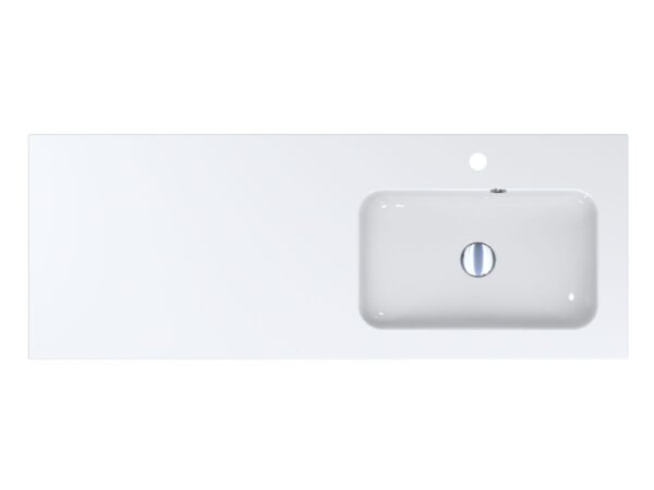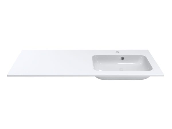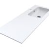 Умывальник DELLA 1200 R из литого мрамора MIRAGGIO. Литой мрамор — твердый и долговечный материал. Основным компонентом смеси является молотая мраморная крошка, которую смешивают с полиэфирными смолами. Раковина покрывается антибактериальным гелем Gelcoat ISO NPG, который делает изделие прочным и белоснежным.