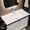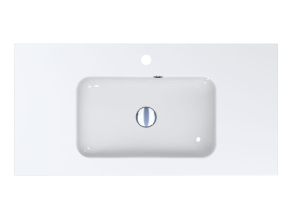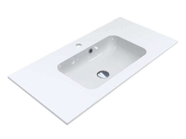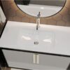 Умывальник DELLA 900 из литого мрамора MIRAGGIO. Литой мрамор — твердый и долговечный материал. Основным компонентом смеси является молотая мраморная крошка, которую смешивают с полиэфирными смолами. Раковина покрывается антибактериальным гелем Gelcoat ISO NPG, который делает изделие прочным и белоснежным.