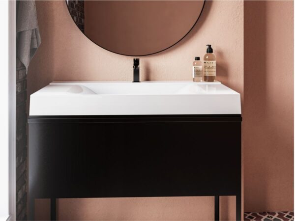 Для получения индивидуального дизайна сантехники, вы можете выбрать любой оттенок из палитры RAL, который наносится на внешнюю поверхность продукции. Умывальник FLY 1000 из литого мрамора также может иметь цветной глянцевый финиш.