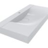 Умывальник FLY 1000 из литого мрамора MIRAGGIO. Литой мрамор — твердый и долговечный материал. Основным компонентом смеси является молотая мраморная крошка, которую смешивают с полиэфирными смолами. Раковина покрывается антибактериальным гелем Gelcoat ISO NPG, который делает изделие прочным и белоснежным.