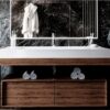 Некоторые модели умывальников могут изготавливаться из кварцевого песка (вариация моделей ограничена) и иметь черное или серое окрашивание. Такие изделия прекрасно подойдут для дизайна в стиле лофт.