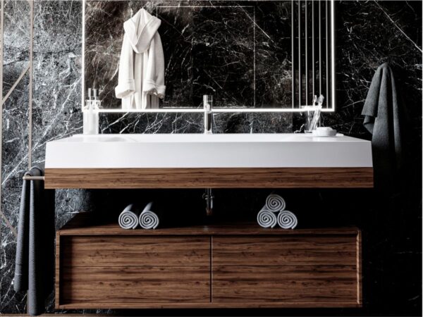 На заключительном этапе производства, чтобы получить глянцевый блеск, Умывальник FLY 1200 из литого мрамора полируется специальной пастой. Глянцевое изделие неприхотливо в повседневной жизни.