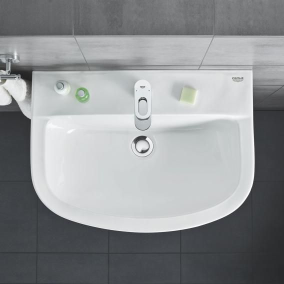Раковина GROHE Bau Ceramic 45 прекрасно подойдет для небольших ванных комнат, без компромиссов со стилем или качеством. Размеры этой раковины составляют 453 х 354 мм. Она содержит одно отверстие для смесителя и перелив. Раковина изготовлена из гладкого фарфора в цвете «альпин-белый», что делает ее поверхность прочной и долговечной. Благодаря тому, что линия керамики Bau идеально подойдет к коллекции смесителей Bau, ваши дизайнерские идеи можно будет реализовать с необычайной простотой. А наше приложение PerfectMatch позволит вам подобрать составляющие для безупречного сочетания и улучшенной функциональности. Керамика GROHE основывается на международной экспертной оценке GROHE в сфере сантехнического оборудования и столетнем безупречном опыте корпорации LIXIL, которая является лидером индустрии в категории керамика. Керамика GROHE Bau — вневременной дизайн и разнообразие для дизайна ванной комнаты.