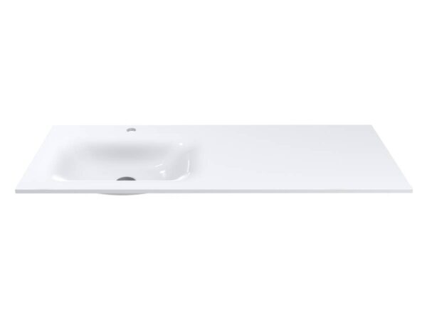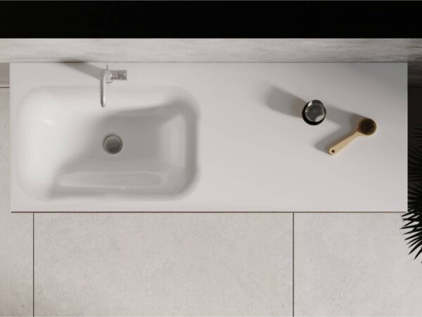 Умывальник JESSEL 1200 L из литого мрамора MIRAGGIO. Литой мрамор — твердый и долговечный материал. Основным компонентом смеси является молотая мраморная крошка, которую смешивают с полиэфирными смолами. Раковина покрывается антибактериальным гелем Gelcoat ISO NPG, который делает изделие прочным и белоснежным.