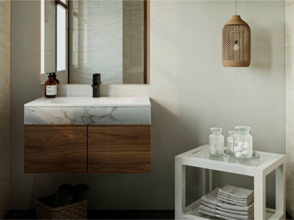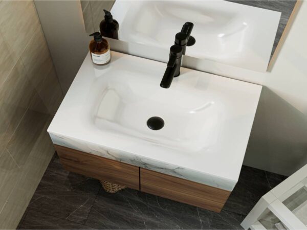 Умывальник JESSEL 700 из литого мрамора MIRAGGIO. Литой мрамор — твердый и долговечный материал. Основным компонентом смеси является молотая мраморная крошка, которую смешивают с полиэфирными смолами. Раковина покрывается антибактериальным гелем Gelcoat ISO NPG, который делает изделие прочным и белоснежным.