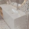 Умывальник JESSEL 900 из литого мрамора MIRAGGIO. Литой мрамор — твердый и долговечный материал. Основным компонентом смеси является молотая мраморная крошка, которую смешивают с полиэфирными смолами. Раковина покрывается антибактериальным гелем Gelcoat ISO NPG, который делает изделие прочным и белоснежным.