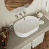 Умывальник KIRA из литого мрамора MIRAGGIO. Литой мрамор — твердый и долговечный материал. Основным компонентом смеси является молотая мраморная крошка, которую смешивают с полиэфирными смолами. Раковина покрывается антибактериальным гелем Gelcoat ISO NPG, который делает изделие прочным и белоснежным.