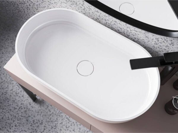 На заключительном этапе производства, чтобы получить глянцевый блеск, Умывальник MARTA 750 из литого мрамора полируется специальной пастой. Глянцевое изделие неприхотливо в повседневной жизни.
