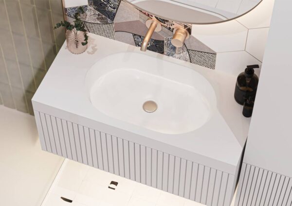 Умывальник ROME из литого мрамора MIRAGGIO. Литой мрамор — твердый и долговечный материал. Основным компонентом смеси является молотая мраморная крошка, которую смешивают с полиэфирными смолами. Раковина покрывается антибактериальным гелем Gelcoat ISO NPG, который делает изделие прочным и белоснежным.