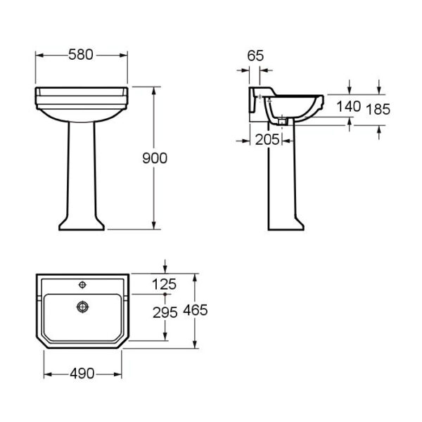 DON GRANDES умывальник с переливом и одним отверстием под смеситель. Размер 580*465*900мм. Устанавливается на пьедестал.