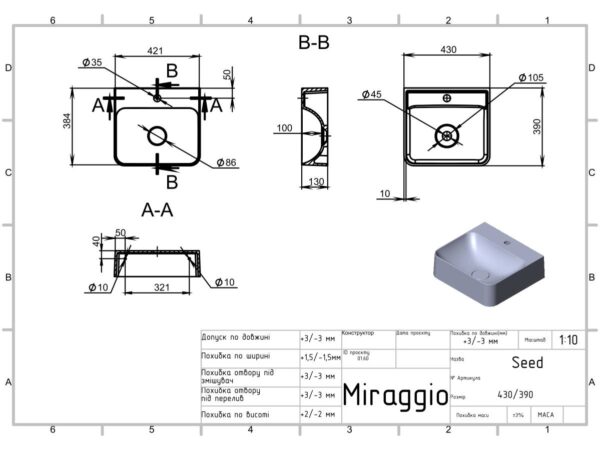 MIRAGGIO — украинский бренд, который уже более 10 лет специализируется на изготовлении сантехники из литого мрамора.