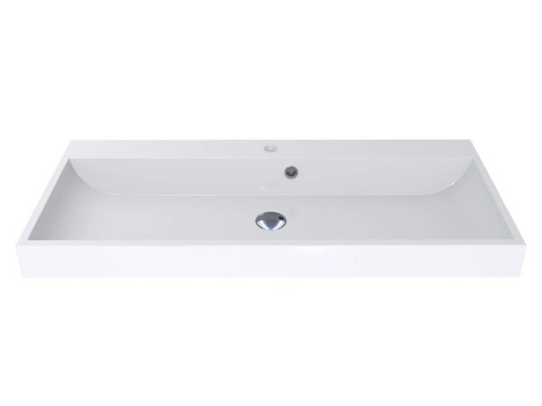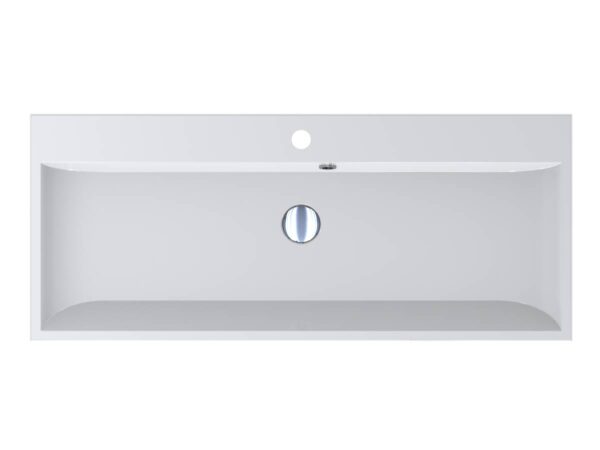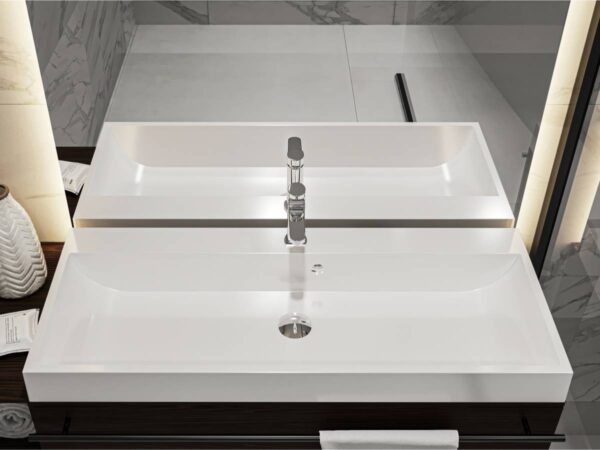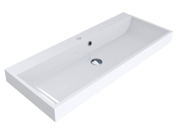 Умывальник VARNA 1000 из литого мрамора MIRAGGIO. Литой мрамор — твердый и долговечный материал. Основным компонентом смеси является молотая мраморная крошка, которую смешивают с полиэфирными смолами. Раковина покрывается антибактериальным гелем Gelcoat ISO NPG, который делает изделие прочным и белоснежным.