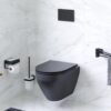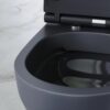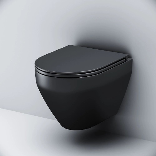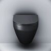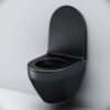 Черные унитазы с уникальным двухслойным покрытием: матовая поверхность снаружи для стильного внешнего вида и глянцевая внутри для легкости в уходе.