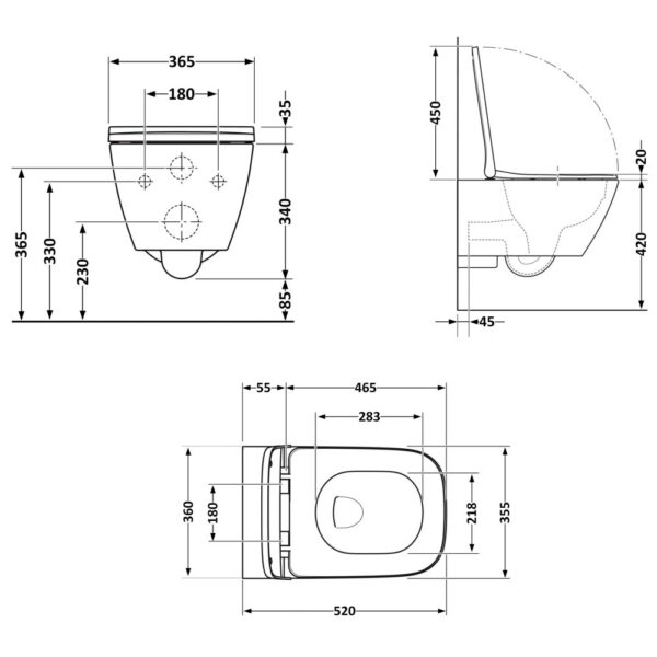 Модель комплектуется тонким сиденьем Slim из дюропласта с функциями Soft-close и Quick Release — для плавного закрытия и удобного снятия при очистке.