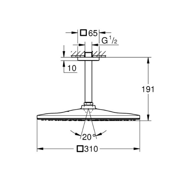 Тип продукта: Верхний душ с потолочным кронштейном