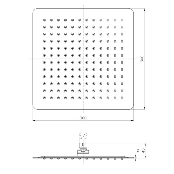 Код товара: 74295Душ верхний Imprese 300х300 мм, 2 мм, сталь Sq300ss2