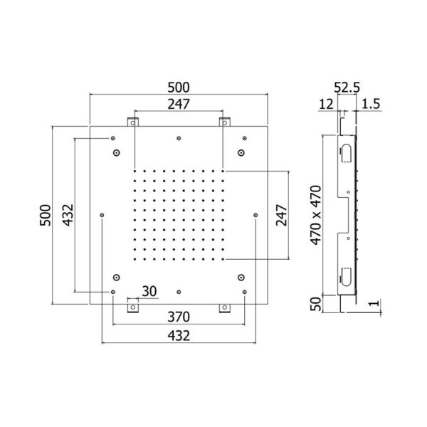 Размер душевого диска: 500 × 500 × 52,5 мм