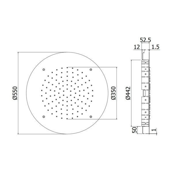 Большой диаметр душевого диска — Ø550 мм для максимального комфорта