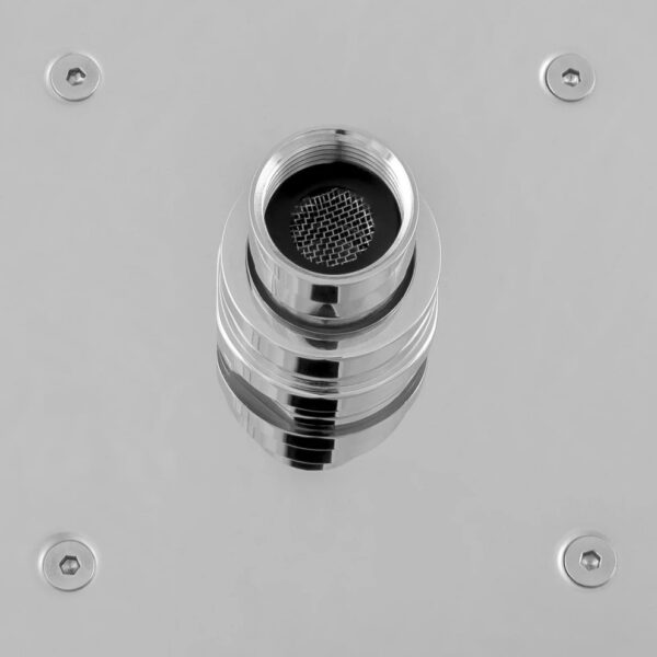 - Форма верхнего душа квадратная, материал — металл. Коллекция — Rodos.