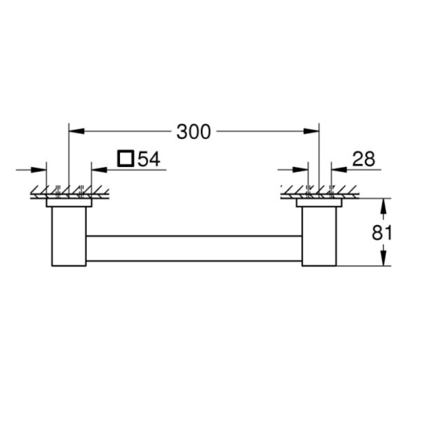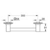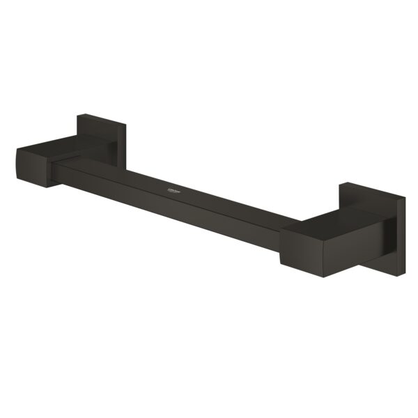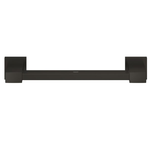 Изготовлен из прочного металла, длина изделия составляет 354 мм, расстояние между крепежными отверстиями — 300 мм. Оснащён скрытым креплением и покрыт стойким и долговечным покрытием GROHE Long-Life Finish. В комплект входят шурупы и дюбели для удобства монтажа.