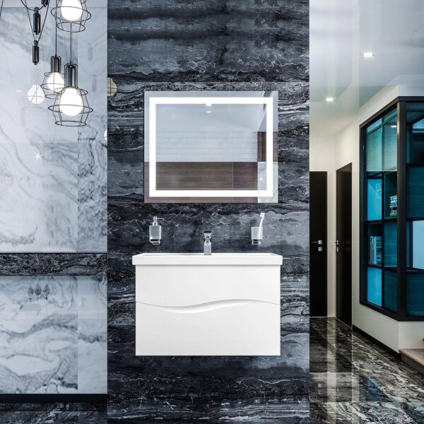 Компания Aqua Rodos заслуженно считается одним из лучших производителей эксклюзивной и качественной сантехники в Украине. Бренд активно развивается и уже много лет завоевывает рынок СНГ, ассоциируясь с высоким качеством, стильным дизайном и долговечностью продукции.Компания использует современное оборудование и сертифицированные материалы от ведущих мировых производителей, что позволяет создавать качественную и экологичную продукцию. Зеркала с LED-подсветкой «Альфа» — универсальные изделия в современном дизайне, которые придают интерьеру эффектный вид. Зеркальные полотна толщиной 4 мм изготовлены бельгийской компанией AGС, покрыты амальгамой на основе серебра и обладают повышенной влагостойкостью. Пескоструйный рисунок по периметру подсвечивается светодиодами. Эти зеркала отлично подходят к тумбам для умывальников компании «Аква Родос» разных размеров. Преимущества LED-зеркал «Альфа» включают высококачественные материалы, соответствующие требованиям ISO 9000:2001, потребление энергии 10 Вт, интенсивность свечения 5800-6200 К, световой поток 440 люменов и использование кристаллов нового поколения. Степень защиты от влаги — IP67, срок службы составляет 50 000 часов. Зеркала отличаются быстрой установкой и современным дизайном. Бренд зарегистрирован в Украине, гарантия на изделие — 3 года. Производится в Украине, монтаж — настенный. Корпус выполнен из ДСП, ширина зеркала — 100 см, высота — 80 см, форма — прямоугольная. Коллекция «Альфа», цвет изделия — серый, встроенная подсветка, комплект включает подсветку и выключатель. Изготовлено из стекла и пластика, имеет четыре источника света. Габариты — 80x100x3 см, мощность блока питания — 20 Вт, входное напряжение — 220 В, цвет подсветки — холодный белый 5800-6200 К.