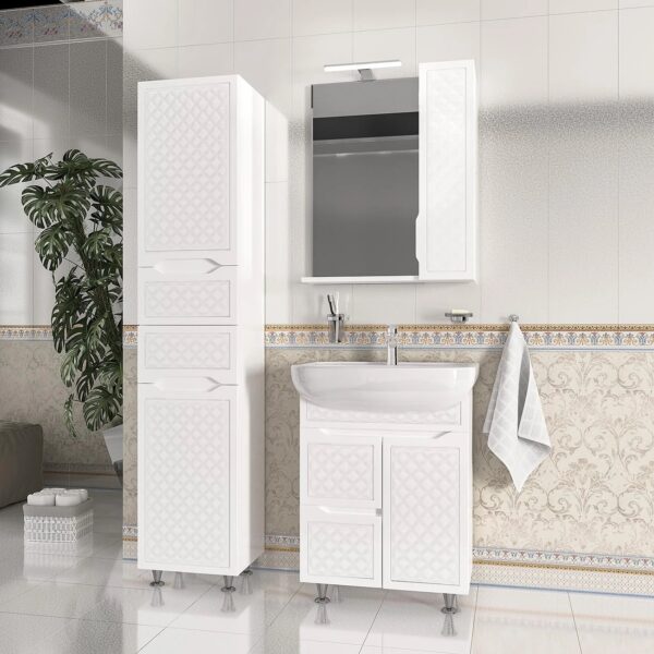 Компания Aqua Rodos заслуженно считается одним из лучших производителей эксклюзивной и качественной сантехники в Украине. Бренд активно развивается и уже много лет завоевывает рынок СНГ, ассоциируясь с высоким качеством, стильным дизайном и долговечностью продукции.Компания использует современное оборудование и сертифицированные материалы от ведущих мировых производителей, что позволяет создавать качественную и экологичную продукцию. Особенности коллекции мебели для ванной комнаты «Родорс» заключаются в использовании высококачественных материалов. Фасады изготовлены из 19 мм МДФ производства «Kronospan» (Польша), а корпус выполнен из ДСП «Egger» (Австрия). Эти материалы устойчивы к изменениям влажности и температурным режимам.Мебель покрыта тремя слоями грунта и окрашена двумя слоями полиуретановой краски от компании «ICA» (Италия). Зеркальные полотна толщиной 4 мм производятся бельгийской компанией «Glaverbell», а светильники поставляются испанской фирмой «Ebir».Фурнитура марки «Hettich» (Германия) сертифицирована и соответствует европейским стандартам качества. Все дверцы мебели оснащены системой плавного закрывания.Страна регистрации бренда — Украина, гарантия составляет 3 года. Мебель устанавливается настенно, а материал корпуса — ДСП. Количество источников света — 1, подсветка присутствует. Материал фасада — МДФ, а габариты изделия составляют 80*65*13.5 см. В коллекции «Родорс» представлены зеркала прямоугольной формы шириной 65 см. Комплектация включает шкафчик, подсветку, выключатель и розетку.